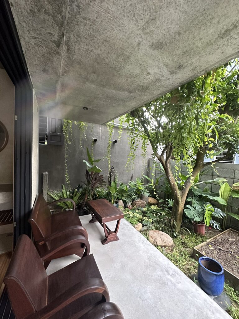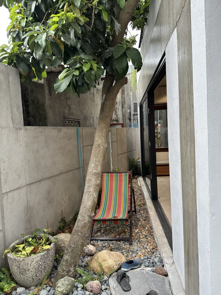 Công trình được thiết kế để tối đa hóa sự kết nối giữa không gian bên trong và bên ngoài. Các khung cửa kính lớn xóa nhòa ranh giới, mời gọi ánh sáng và thiên nhiên tràn ngập vào từng ngóc ngách. Từ những bậc thang bê tông dẫn lối lên tầng trên đến khu vực sân vườn được bố trí khéo léo, mỗi chi tiết đều hướng đến việc tạo ra một dòng chảy liền mạch, giúp gia chủ luôn cảm thấy được bao bọc bởi thiên nhiên.