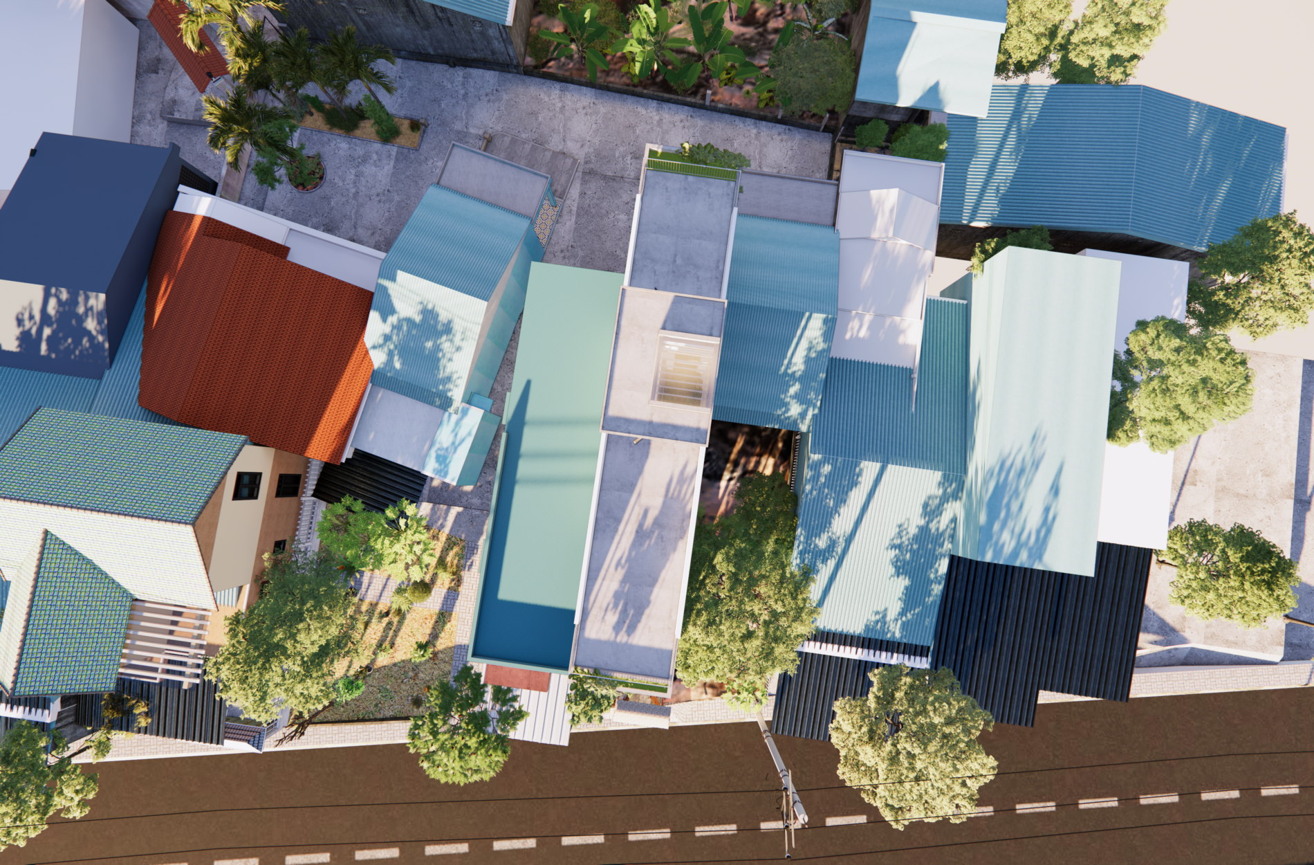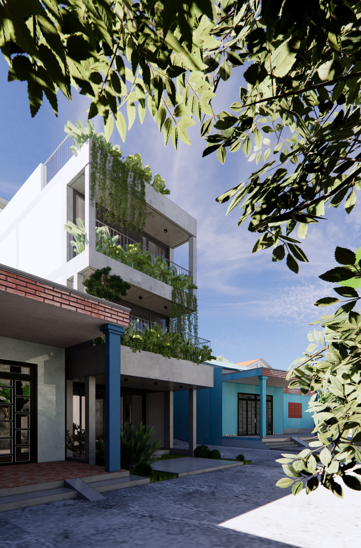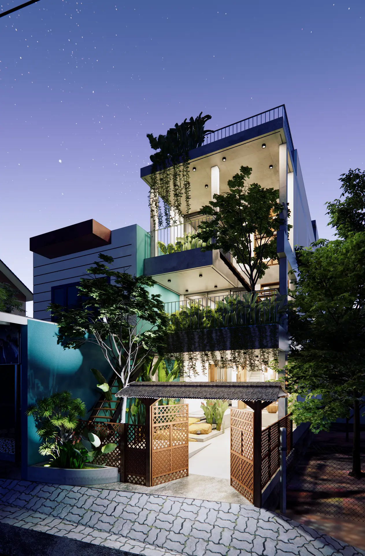 Tọa lạc trên một mảnh đất khiêm tốn giữa khu phố đông đúc, công trình là lời hồi đáp nhẹ nhàng của kiến trúc sư trước mong muốn thiết tha của gia chủ: một tổ ấm dung dị, xanh mát, mang dáng vẻ truyền thống nhưng khoác lên mình một tư duy hoàn toàn mới. Đó không phải là sự phô diễn hình khối hay kỹ thuật, mà là hành trình tìm lại sự cân bằng – giữa thiên nhiên và con người, giữa riêng tư và kết nối, giữa mộc mạc và hiện đại.