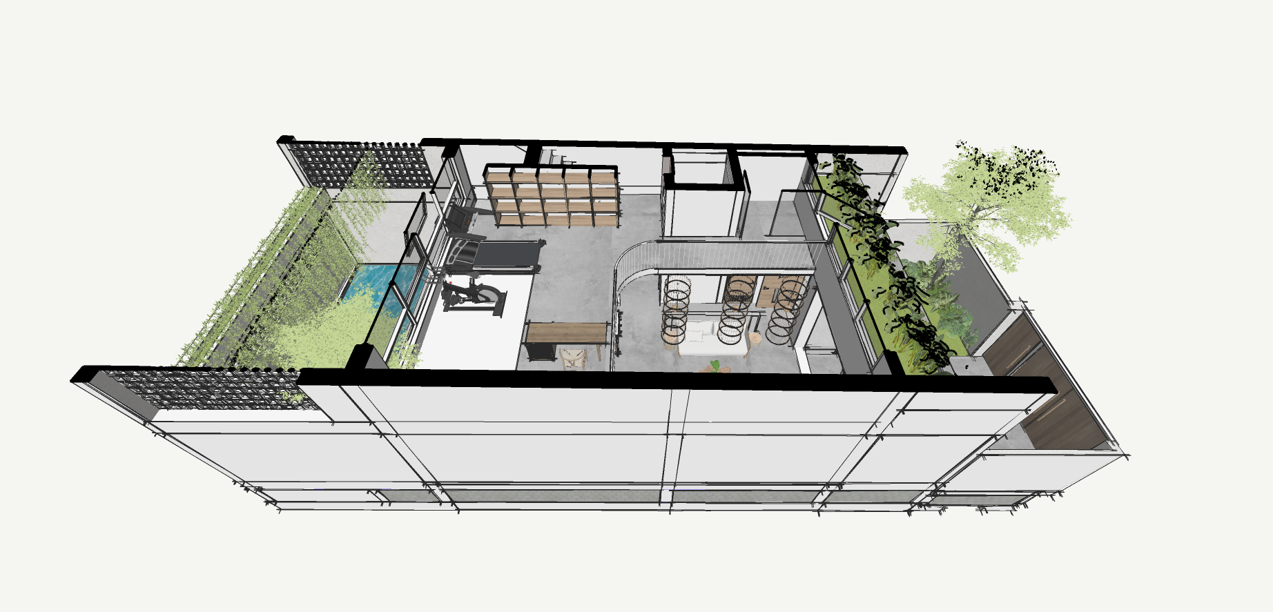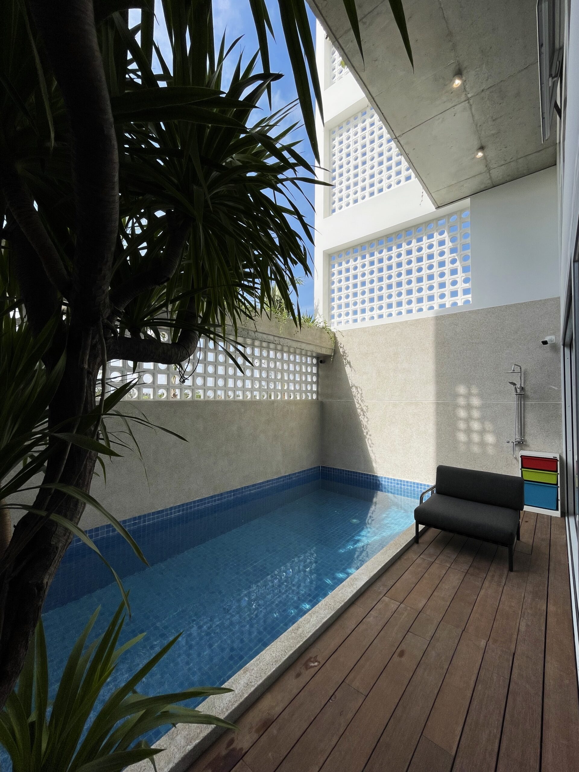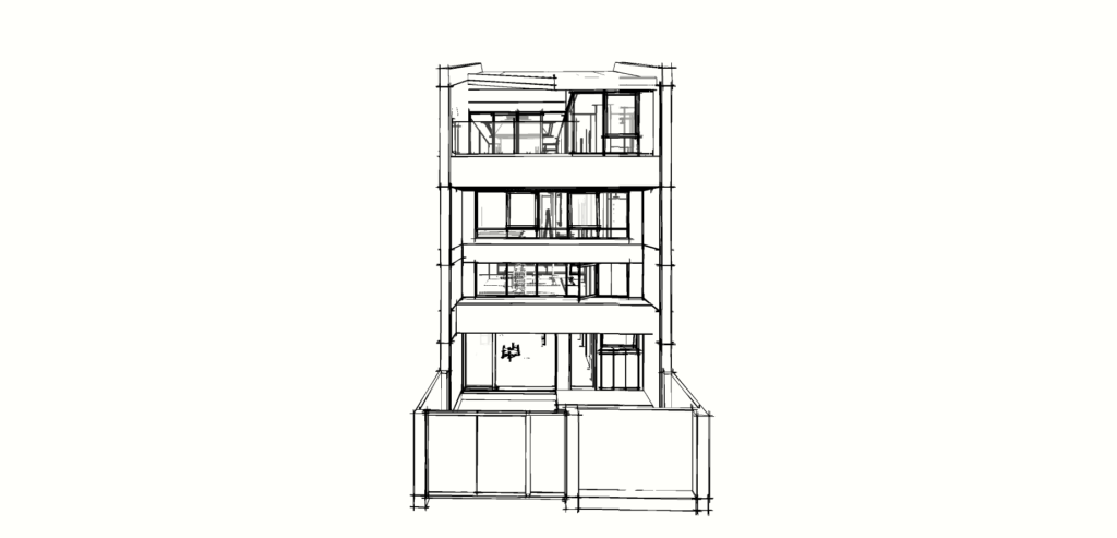 Từ cái nhìn đầu tiên, ấn tượng bởi sự thanh thoát và vươn cao, một điểm nhấn đầy khác biệt trong bối cảnh kiến trúc hiện đại. Mặt đứng được thiết kế khéo léo, không chỉ tạo nên sự riêng tư mà còn tối ưu hóa nguồn sáng tự nhiên và luồng gió đối lưu, mang đến một không gian sống luôn ngập tràn sự tươi mới. Những ban công rộng lớn, lùi sâu và nối tiếp nhau, mở ra những “khoảng thở” quý giá, nơi gia chủ có thể thoát khỏi sự ồn ào và tìm thấy sự bình yên.