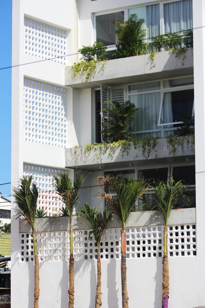 Điểm nhấn làm nên linh hồn của mặt đừng sau chính là những mảng xanh được lồng ghép một cách nghệ thuật. Không chỉ là cây cảnh trang trí, đây là những “khu vườn thẳng đứng” – những ốc đảo xanh tươi trải dài qua các tầng, tạo nên một hiệu ứng thị giác ấn tượng và mang thiên nhiên đến gần hơn với cuộc sống hàng ngày. Mỗi tầng ban công, mỗi góc nhà đều được chăm chút để trở thành một khu vườn nhỏ, nơi gia chủ có thể tận hưởng không khí trong lành, ngắm nhìn sự chuyển mình của cây cối theo mùa, và tìm thấy nguồn cảm hứng bất tận từ thiên nhiên.